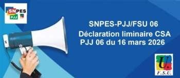 SNPES-PJJ/FSU 06 Déclaration liminaire CSA PJJ 06 du 16 mars 26 chaton2026-03-26T10:40:30+01:0025 mars 2026|Catégories : Locales| Partagez cet article ! FacebookXEmail