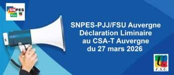 SNPES-PJJ/FSU Auvergne Déclaration Liminaire du CSA-T Auvergne du 27 mars 2026 chaton2026-04-04T21:39:08+02:004 avril 2026|Catégories : Locales| Partagez cet article ! FacebookXEmail