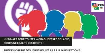 Un 8 Mars pour toutes, à chaque étape de la vie, pour une égalité des droits ! Prise en charge des jeunes filles à la PJJ. Où en est-on ? snpespjjadmin2026-03-05T23:38:42+01:004 mars 2026|Catégories : à la une, ACTUALITÉS, Nationales, Orientations professionnelles| Prise en charge des jeunes filles à la PJJ. Où en est-on ? Partagez cet article ! FacebookXEmail Articles similaires SNES-FSU et SNUipp-FSU majoritaires aux élections professionnelles des psychologues de l’Éducation nationale SNES-FSU et SNUipp-FSU majoritaires aux élections professionnelles des psychologues de l’Éducation nationale 3 décembre 2017 Demo-Élections présidentielles : pas une voix pour le Front national ! Demo-Élections présidentielles : pas une voix pour le Front national ! 24 avril 2017 Demo-Mercredi 8 mars, journée internationale des droits des femmes. Demo-Mercredi 8 mars, journée internationale des droits des femmes. 6 mars 2017 Demo-Appel collectif pour l’avenir des lycées professionnels Demo-Appel collectif pour l’avenir des lycées professionnels 20 juin 2016