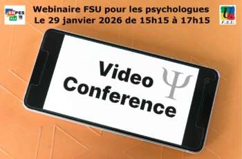 Afin de porter vos revendications, la FSU vous propose 3 premiers webinaires à destination des agents du ministère de la Justice le 29.01.26 de 15h15 à 17h15 pour un échange dédié aux psychologues (formation, temps FIR, article 10, etc.).